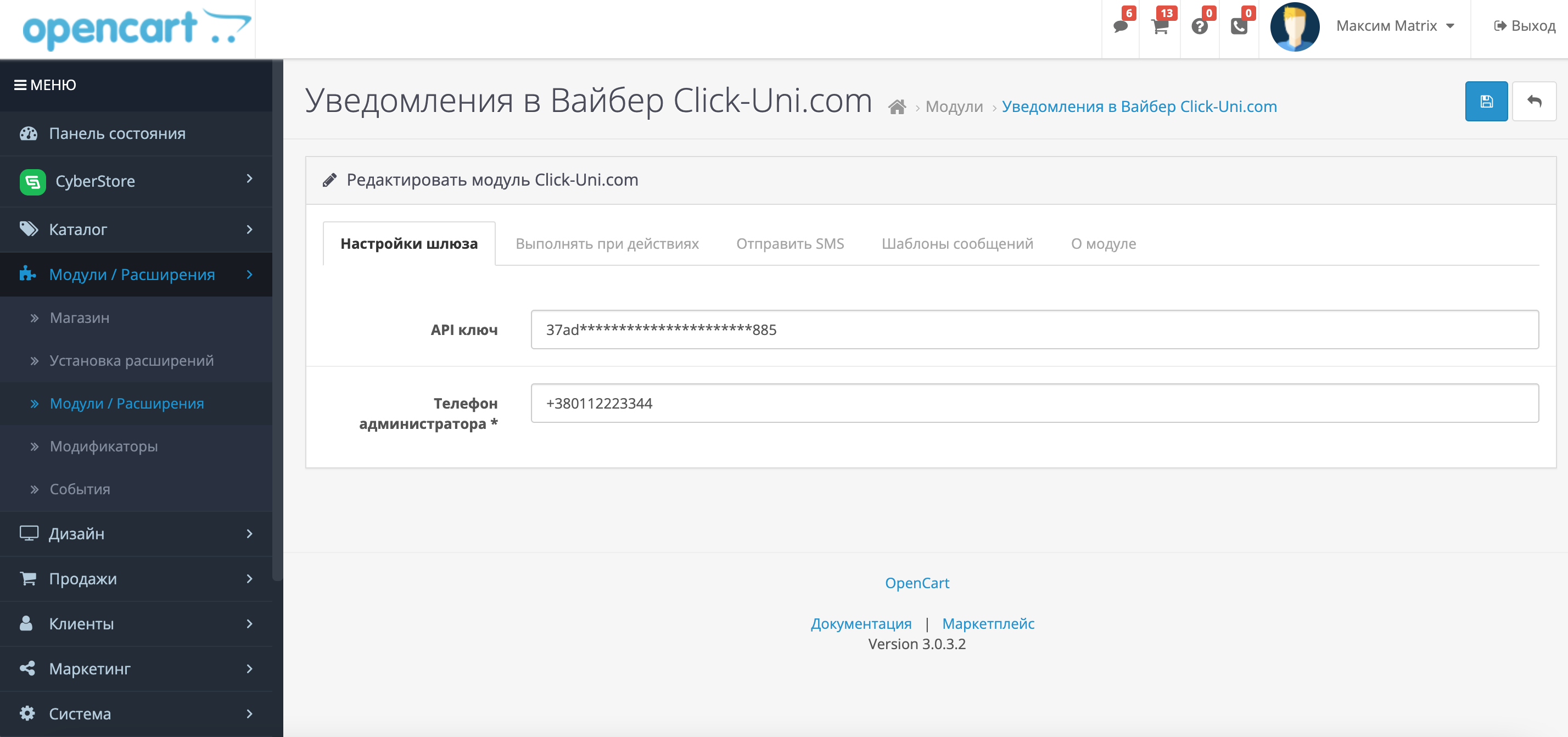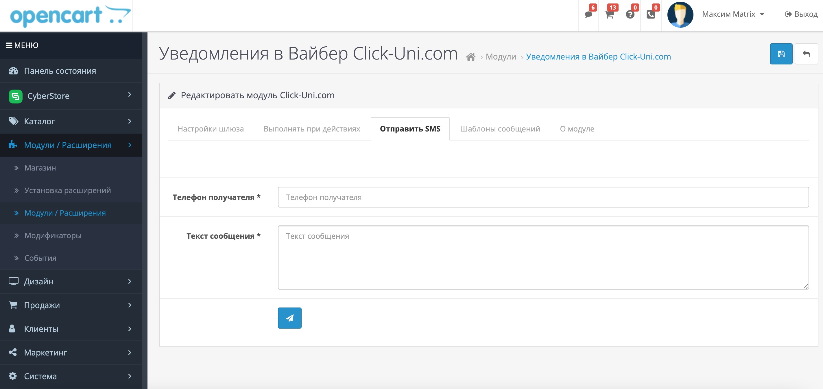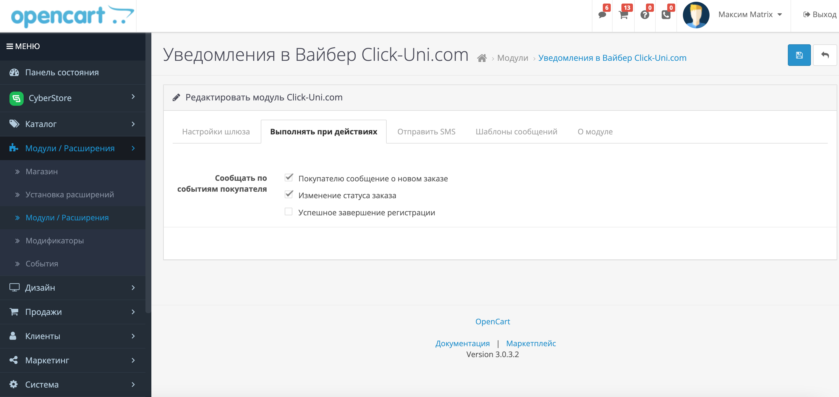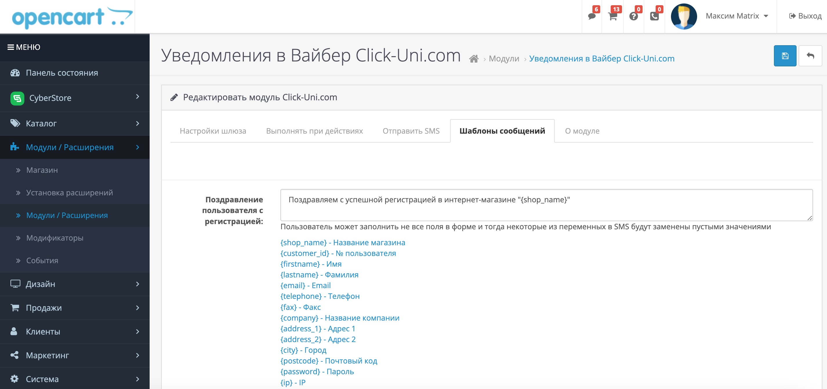После настройки синхронизации Вам будет доступна настройка шаблонов сообщений при совершении определенных действий:
