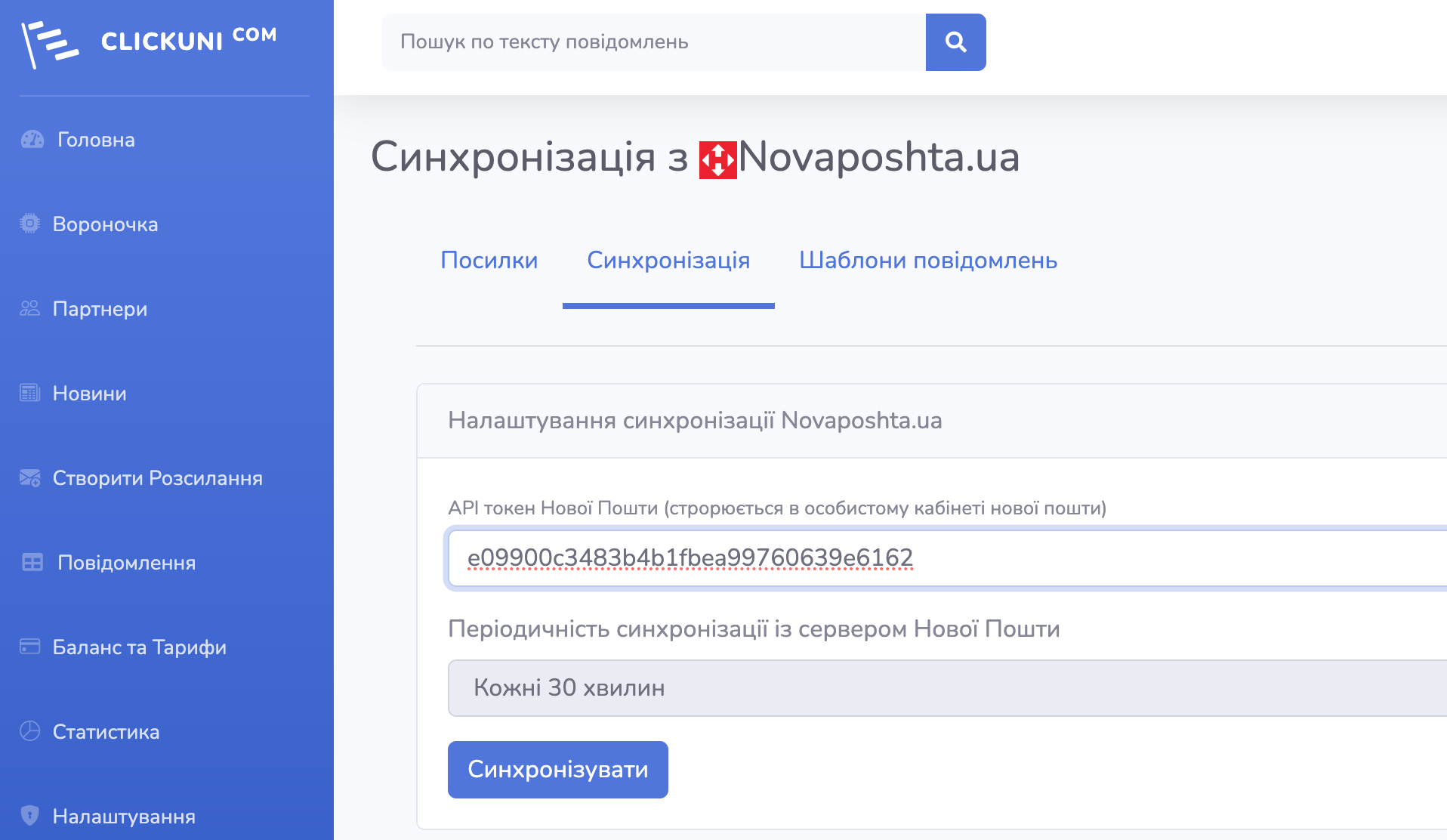 В розділі налаштування треба ввести API ключ (можна взяти в особистому кабінеті нової пошти)
